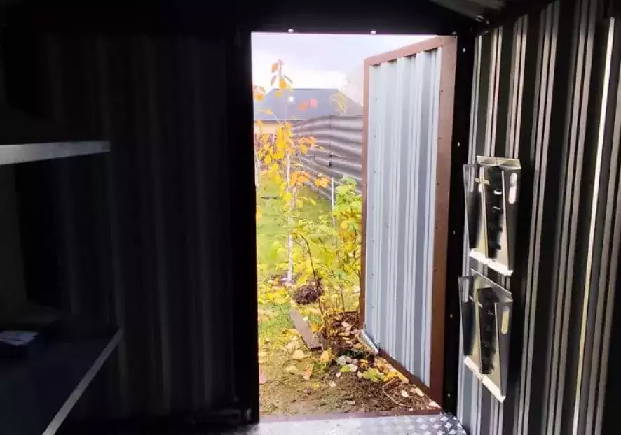 Был нужен склад для стройматериалов. Думал сначала сделать сам, но решил купить готовый, не пожалел. Металл толстый, замок надёжный, ничего не течет и не скрипит, да и изготовили быстрее чем сам бы возился.