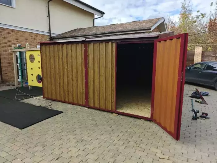 Проект: два 4-метровых хозблока для хранения хозяйственных вещей в графитовом цвете.