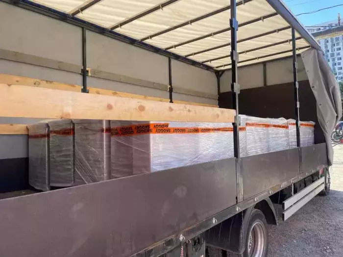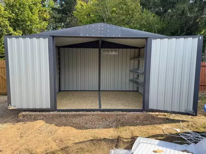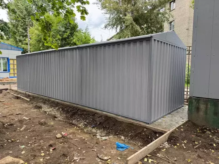 Доставляли постройку на участок заказчика манипулятором в разобранном виде. Нашими специалистами предоставлялись услуги по установке бетонных блоков и сборке изделия.