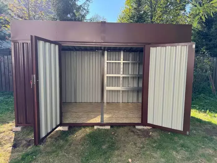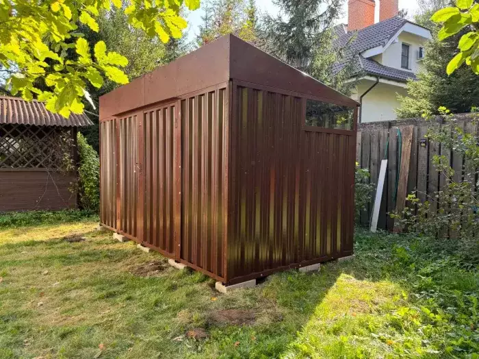 Проект: мини хозблок для хранения инвентаря и хозяйственных принадлежностей в графитовом цвете.