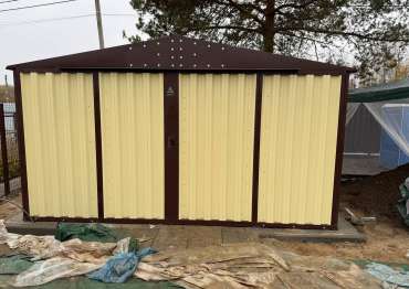 Проект: широкий 3-метровый хозблок для хранения техники в комбинированной расцветке.
