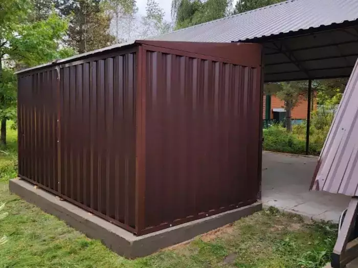 Проект: хозблок 3 х 3 м для хранения велосипеда и хозяйственных принадлежностей в комбинированной расцветке.