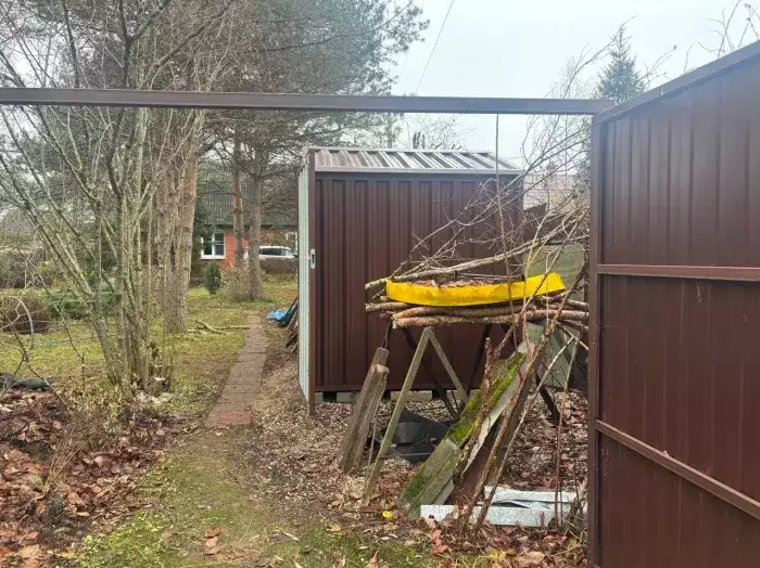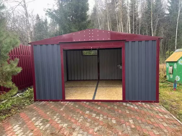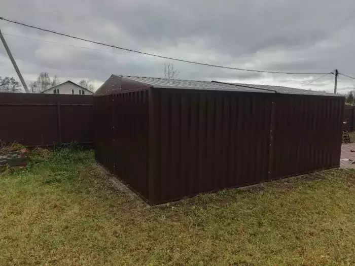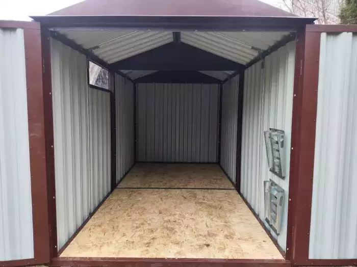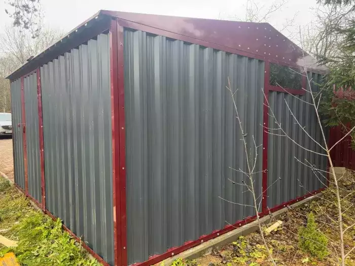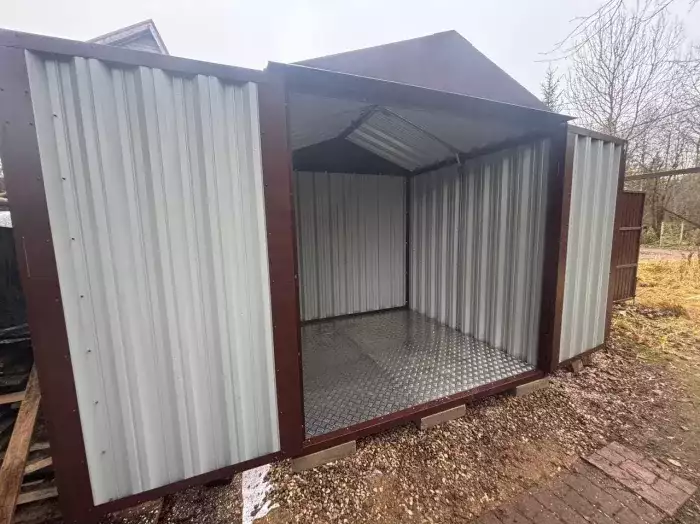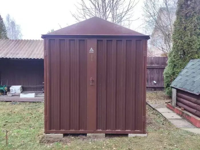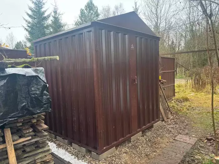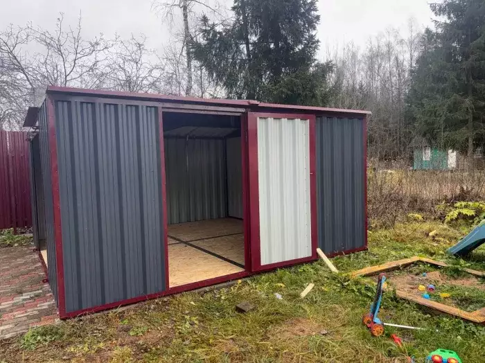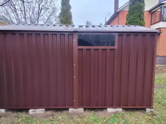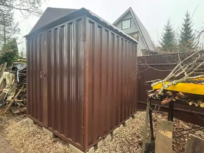 Обратилась заказчица, которой был необходим хозблок на участок. Изготовили 6-метровую конструкцию с двускатной крышей и торцевой дверью.