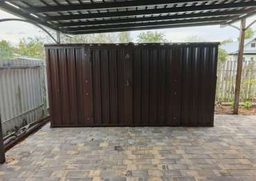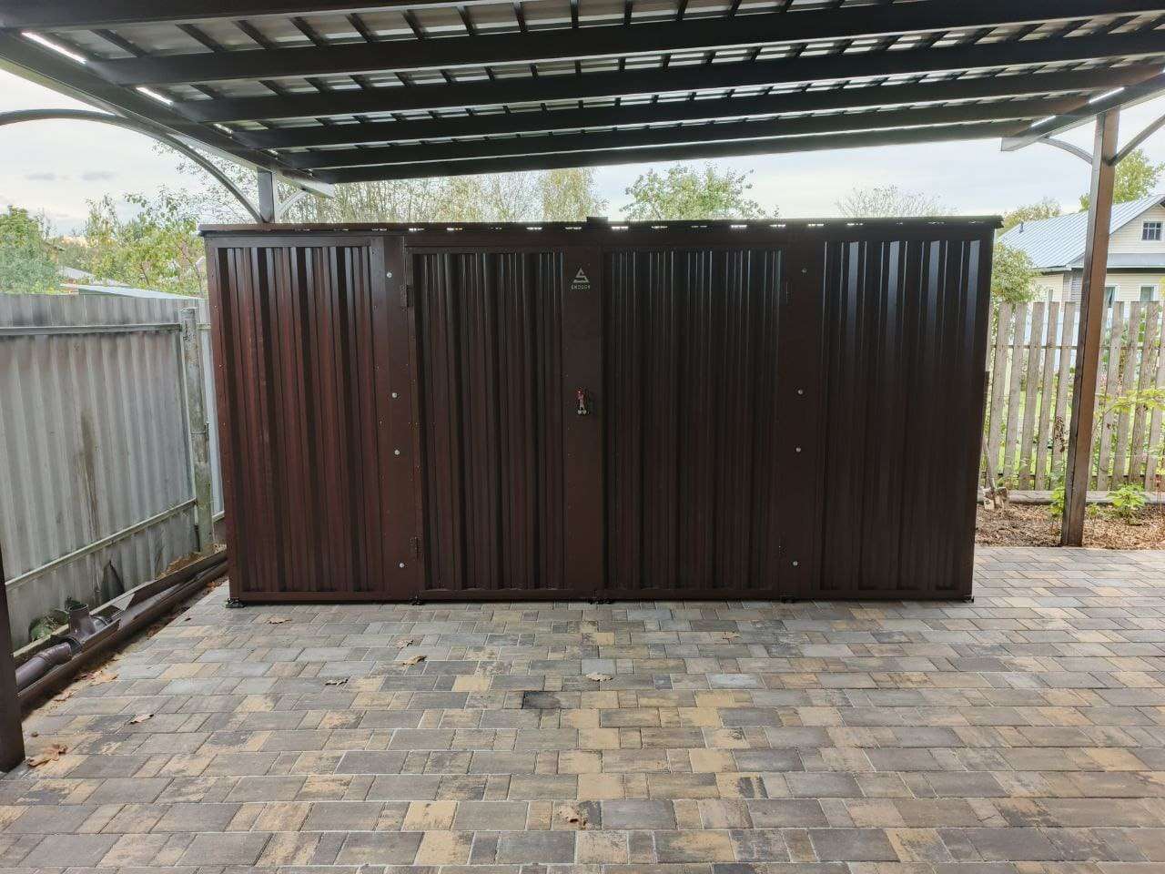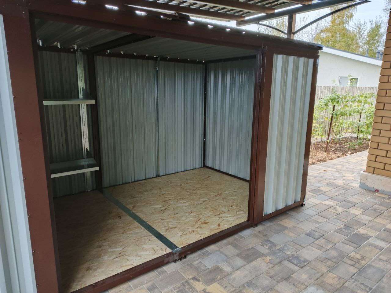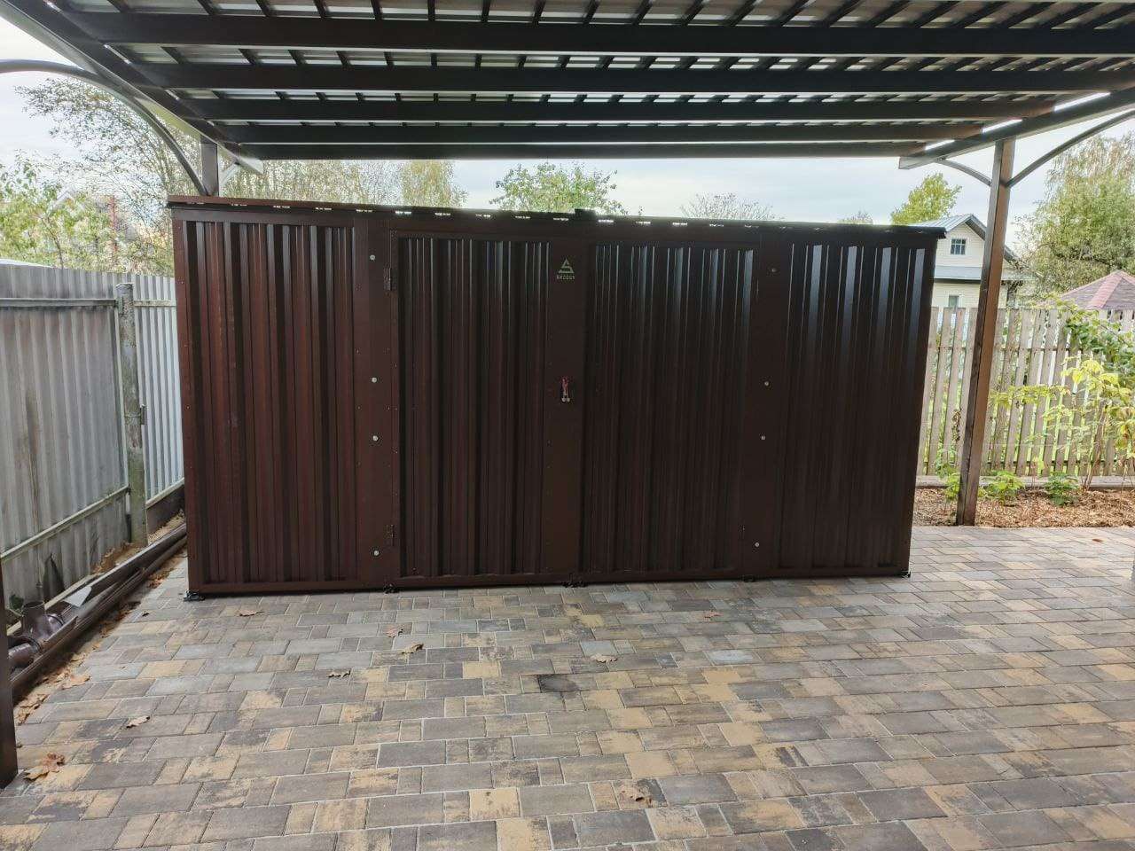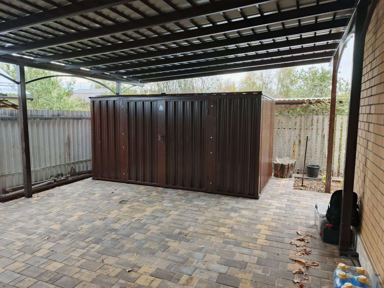 Проект: 4-метровый хозблок для хранения хозяйственных вещей в шоколадном цвете.