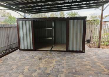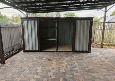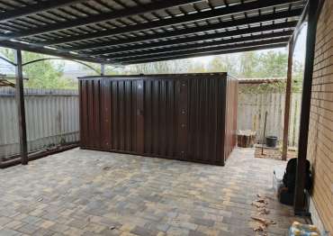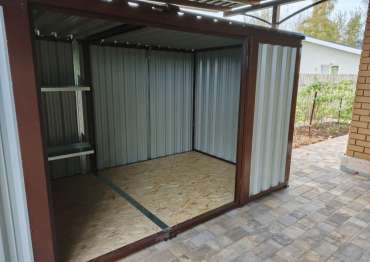 Заказчику этого проекта понравились наши изделия еще в прошлом году. Он долго наблюдал за нашими новостями, а также приезжал к нам на выставочную площадку, чтобы лично увидеть наши конструкции. Ему на участок был необходим хозблок для хранения хозяйственных вещей для установки под навес.