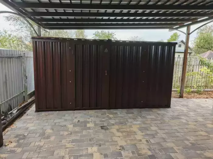 Проект: 6-метровый хозблок для хранения садового инвентаря в расцветке "под дерево".