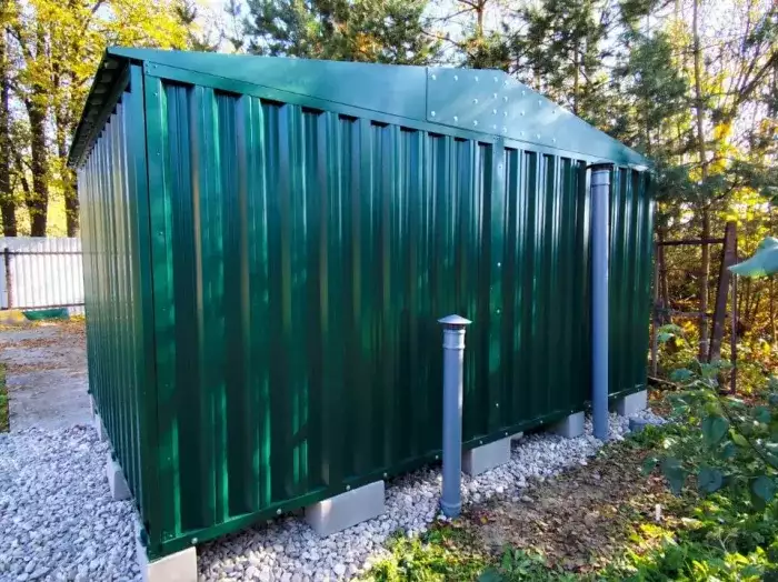 Проект: миниатюрный 1 х 1 м хозблок в зеленом цвете.